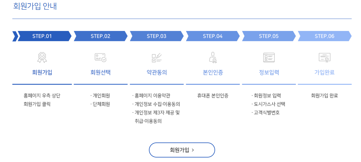 이미 회원이라면 바로 로그인 후 신청 단계로 넘어갑니다. 도시가스 고지서나 계약서에 기재된 고객번호를 입력합니다.